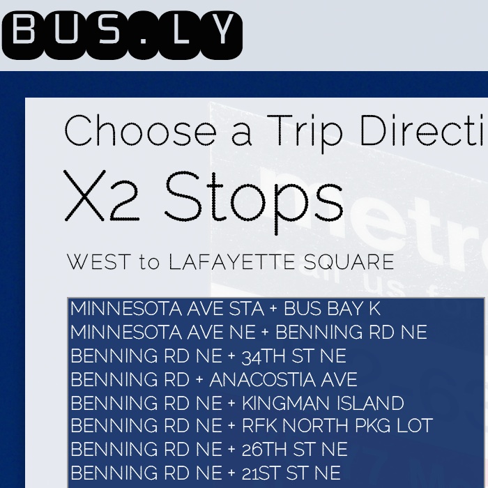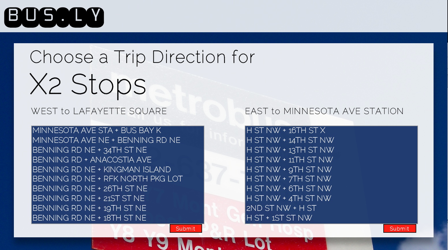 Bus.ly is a basic bus stop prediction application, which provides users with WMATA predictions for the Metro Bus System.